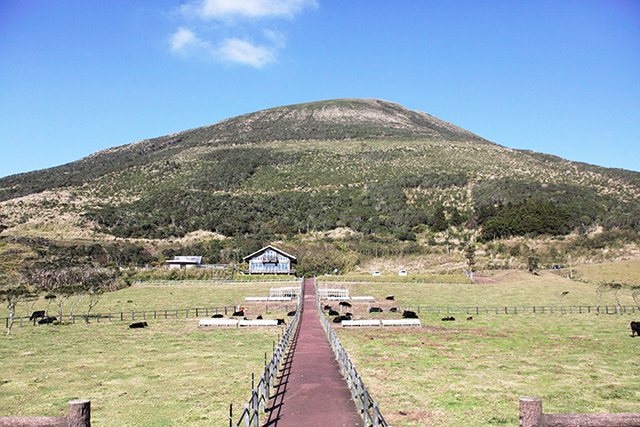八丈富士の南側の中腹には、黒毛和牛が放牧されている「ふれあい牧場」があります。のんびりと草をはむ牛たちを間近で観察することができます。また、牧場の展望台からは、三原山や八丈島の市街地、空港が一望できます。八丈富士の西側の中腹には、八丈小島を眺めることができる「八丈小島展望台」があり、夕日や星空観察のお勧めスポットです。